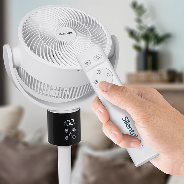 Try the Silentnight Airmax Pro360 Oscillating Stand Fan it quiet yet powerful, featuring 12 powerful speed settings and omni-directional oscillation for cooling comfort everywhere.