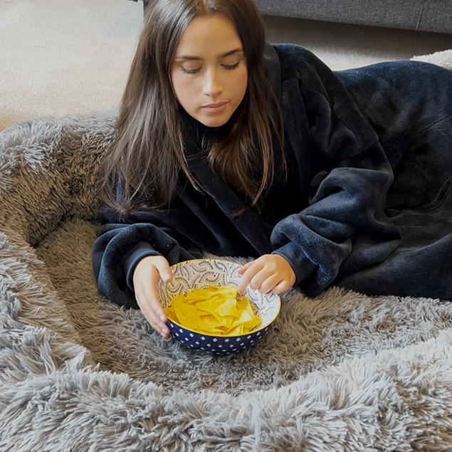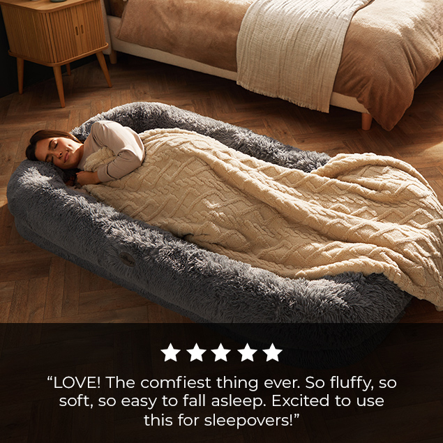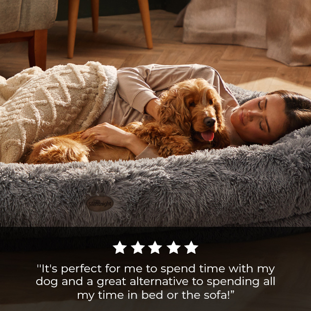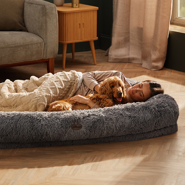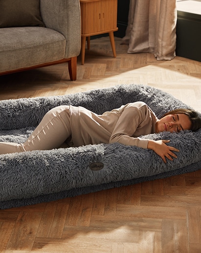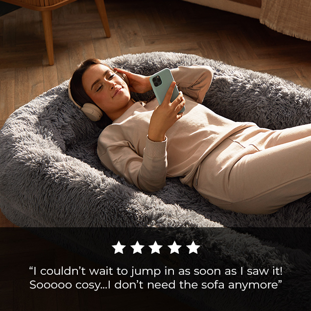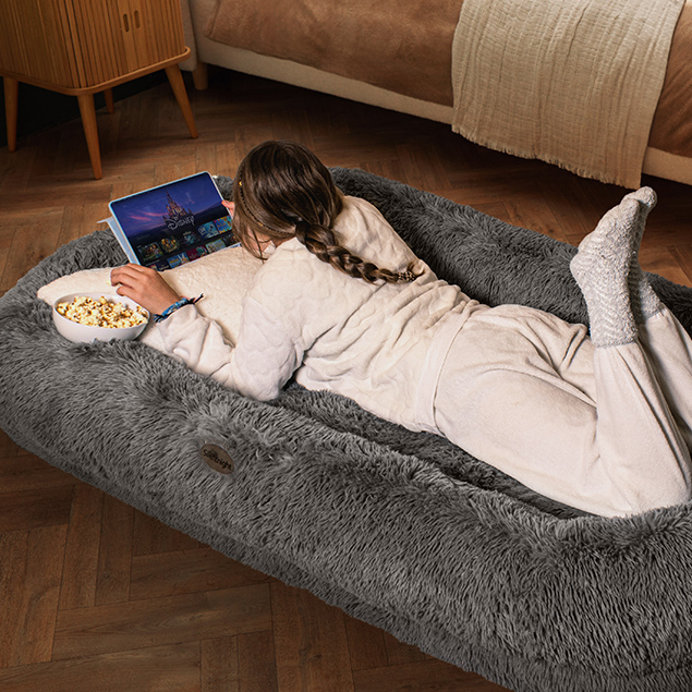 Why go out when you can stay in and snuggle. Pet beds for humans = genius! This particular super cosy human dog bed is covered in a soft plush fabric that will make you, your partner, your child or pet feel like royalty. It’s also big enough to make you all feel like that at once!