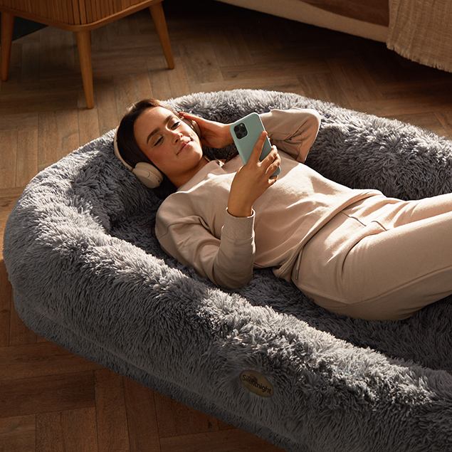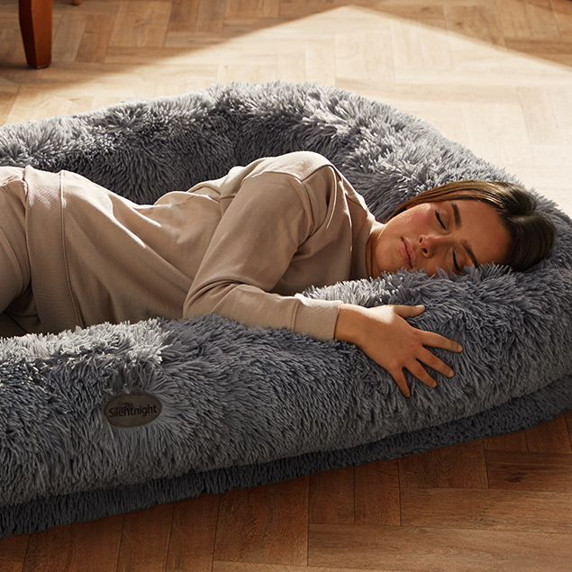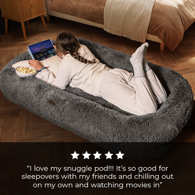 We’re thrilled to introduce the latest must-have for ultimate relaxation: the Silentnight Snuggle Pod! New in and exclusive to Sleepy People, the Silentnight Snuggle Pod is a human pet bed which is a big pet bed for humans that’s taken the design of an ultra-cosy pet bed but scaled up massively. It’s like a giant dog bed, but a much comfier version.