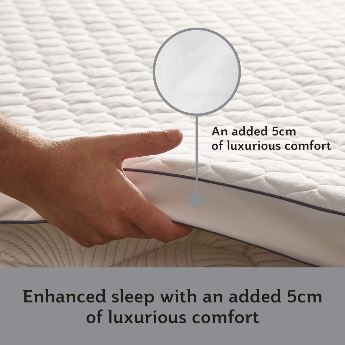 A supportive memory foam base is topped with sink-in memory foam for ultimate comfort and support, adding an extra 5cm of depth to your mattress for a great night’s sleep.