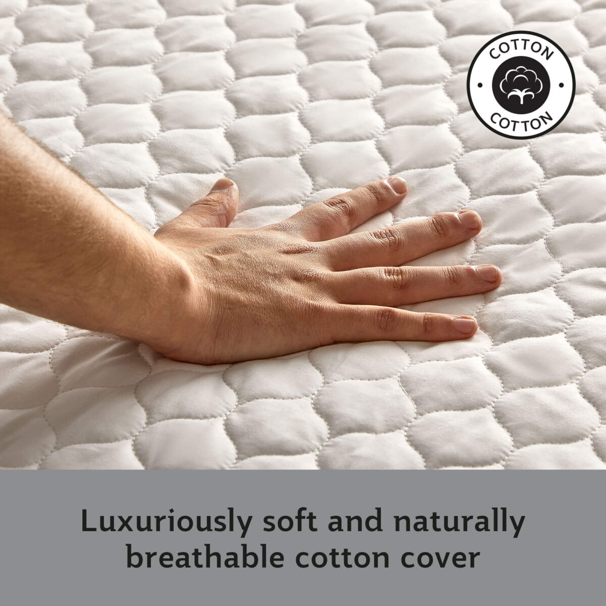 The luxuriously soft, quilted cover is crafted with naturally breathable 100% cotton and is fully removeable and machine washable for continued freshness night after night. Elasticated straps ensure a secure fit on your mattress and a non-slip base provides additional stability.