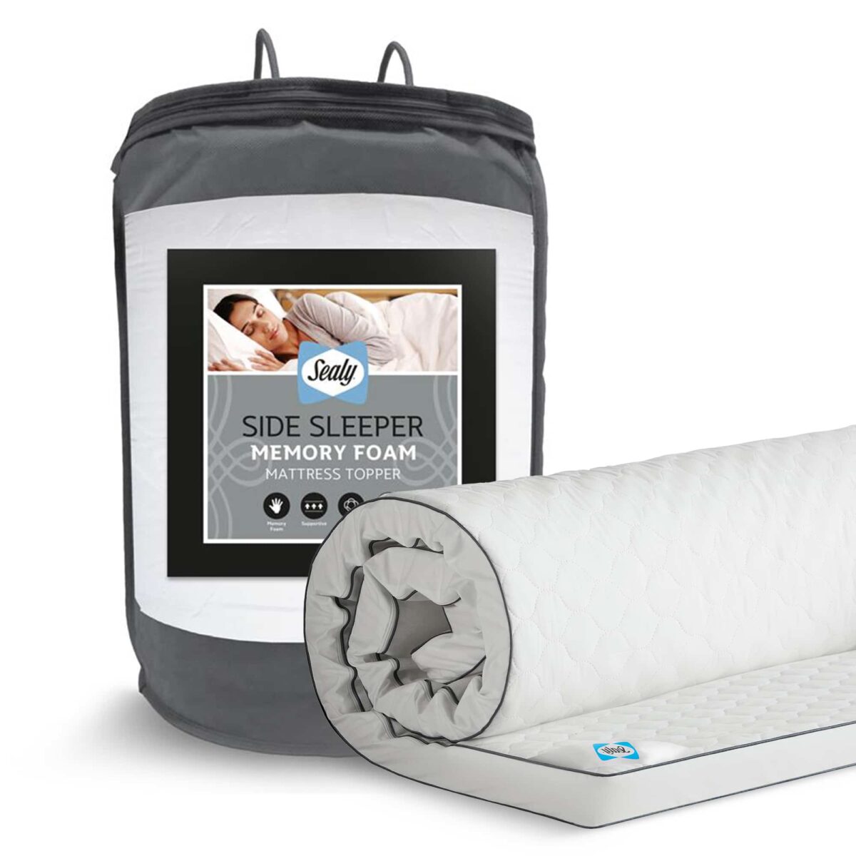 The Sealy Side Sleeper Topper is ergonomically designed to support side sleeping by evenly distributing weight for optimal body and spinal alignment. Adds an additional 5cm of comfort to your mattress with a sink-in memory foam top.