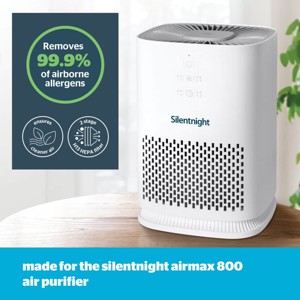 Ensure cleaner air and a refreshing night’s sleep for all the family with the Silentnight Airmax 800 Air Purifier and true 2-stage HEPA filter. The HEPA filter removes 99.9% of dust, smoke, pollen, and allergen airborne particles from the room. For use with the Silentnight Airmax 800 Air Purifier, you can easily replace your filter in just a few simple steps, and it is recommended you do this every 6 months for optimum performance, so you can enjoy clean, fresh air all year round.