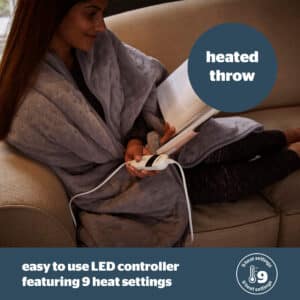 - EXTRA COSY IN MINUTES: The Comfort Control Heated Throw heats up in just a few minutes, so you can snuggle up and enjoy extra cosy comfort. Featuring 9 heat settings so that you can control your comfort and choose the warmth that suits you best