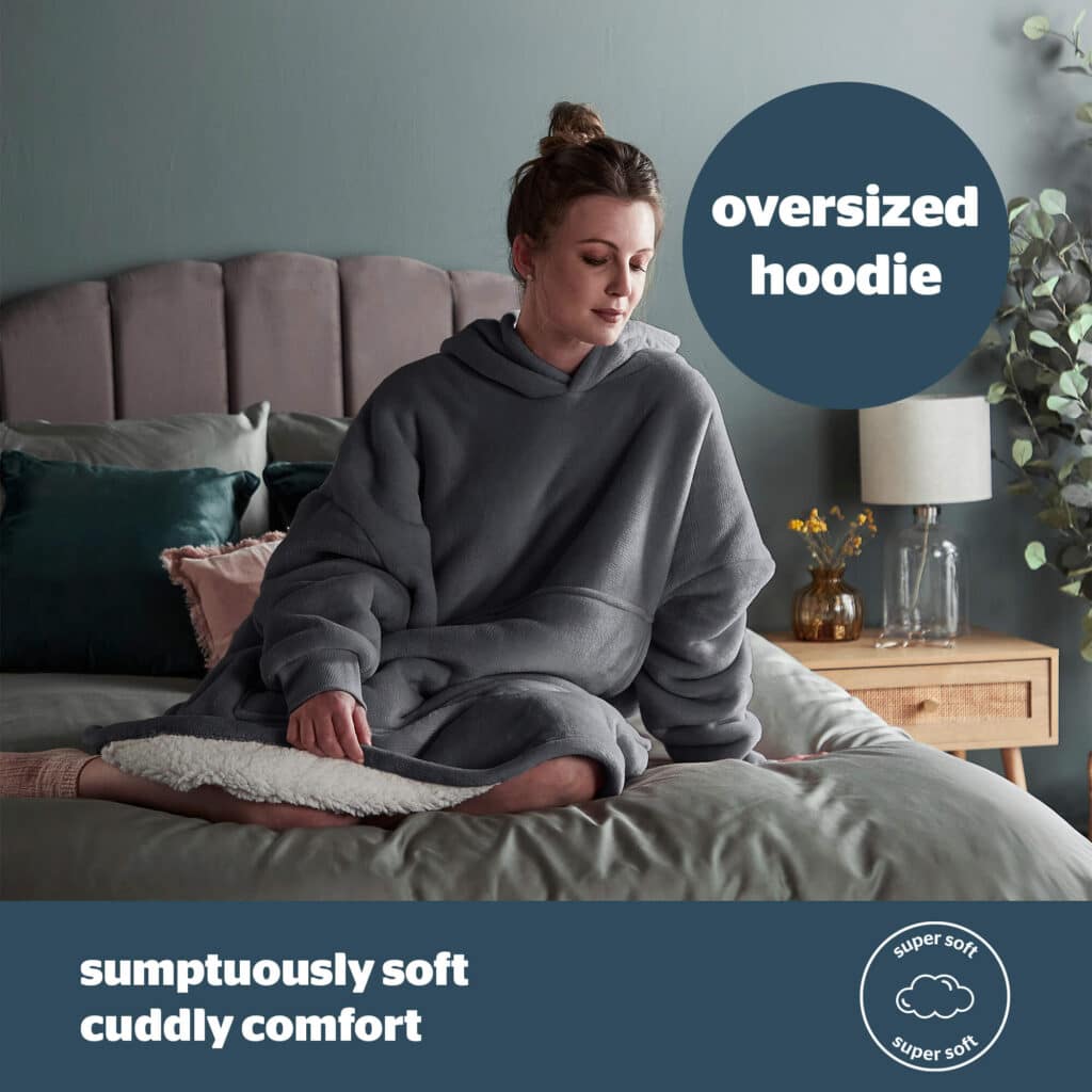 - ULTIMATE COSINESS ANYWHERE: Sumptuously soft comfort to keep you warm and cosy as you relax, anywhere. The Snugsie oversized hoodie has a soft flannel fleece outer and a warm sherpa fleece inside, for ultimate one size fits all cosiness.