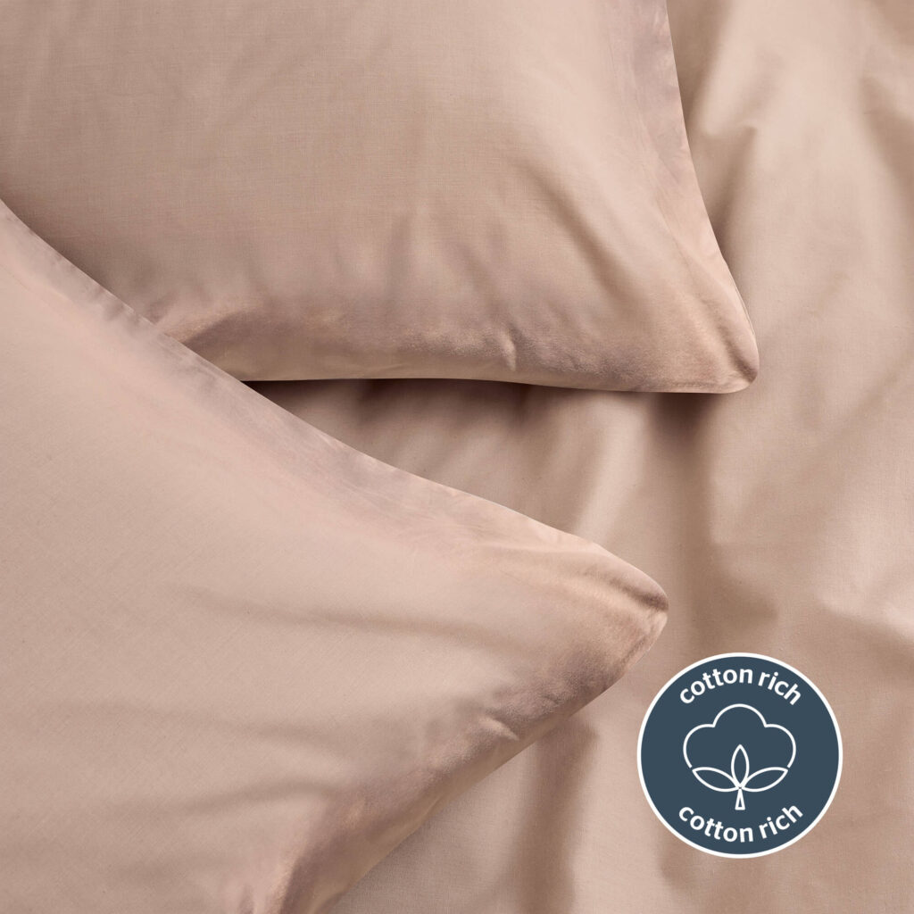 Crafted with a blend of natural washed cotton and polyester combining luxurious softness & easy-care properties. Delivering a stylish linen-look that keeps you comfortable throughout the night.
