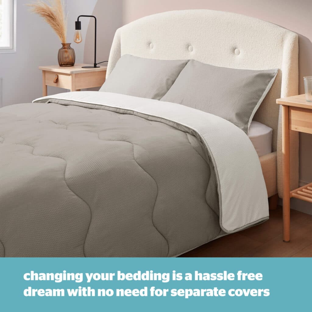 - NO COVER NEEDED: This set includes a duvet with a sewn on textured seersucker cover, so there's no need for an additional duvet cover, making dressing and changing your bed a hassle-free dream! The set includes a matching pillowcase.
