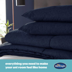 Making dressing and changing your bed is a hassle-free dream, with this bedding bundle, perfect for university. The bundle includes a Silentnight Coverless Duvet Set, Silentnight Deep Sleep Mattress Topper, Silentnight Deep Sleep Mattress Protector, Silentnight Deep Sleep Pillow Pair and a Silentnight Super Soft Fitted Sheet.