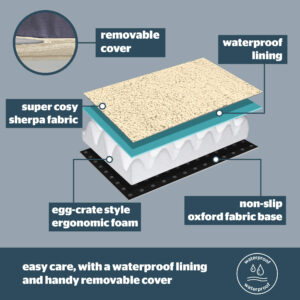 Provides ultimate comfort and support, distributing the weight evenly and reducing pressure on joints. The super soft-touch fleece and durable woven sides, keeping it feeling cosy and comfortable snooze after snooze.