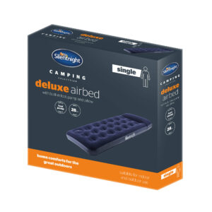 This Silentnight airbed which come in two sizes Single and Double are designed with a double flock soft fabric surface, and a raised pillow for improved comfort throughout the night. The Silentnight airbed features a built in foot pump at the corner of the bed to inflate within minutes. For peace of mind the airbed also includes a heavy duty repair patch and features an interlocking quick release valve. The Silentnight airbed is great for indoor and outdoor use. Designed with a double flock soft fabric surface, and a raised pillow for improved comfort throughout the night.