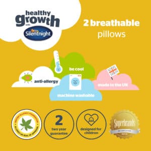 The Silentnight Healthy Growth Breathable Pillow helps your child rest and recover in breathable comfort. The pillow features specially designed mesh sides which help to increase airflow.r. The pillow is filled with antibacterial fibres that actively protect against bacteria and dust mites to help prevent allergies. The fibres are approved by the British Allergy Foundation, which means they have the ultimate seal of approval.