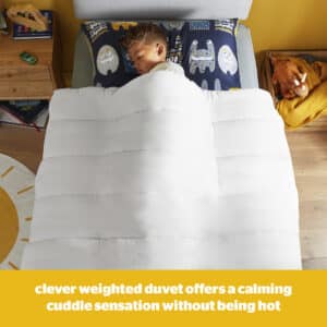 - CALMING FOR BETTER SLEEP: Drift into a peaceful sleep with a calming cuddle sensation from the Healthy Growth Calming Duvet. By using extra filling we have designed a clever weighted duvet is cosy without being hot yet and is perfect to calm, comfort and relax your child after a busy day. This promotes longer, deeper sleep.
