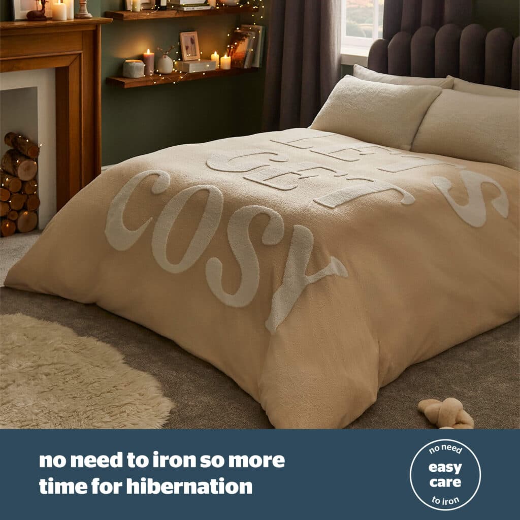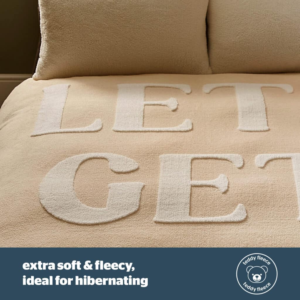 - SLOGAN DESIGN: The design features the bold lettering “let's get cosy” across the front of the duvet, perfect for winter