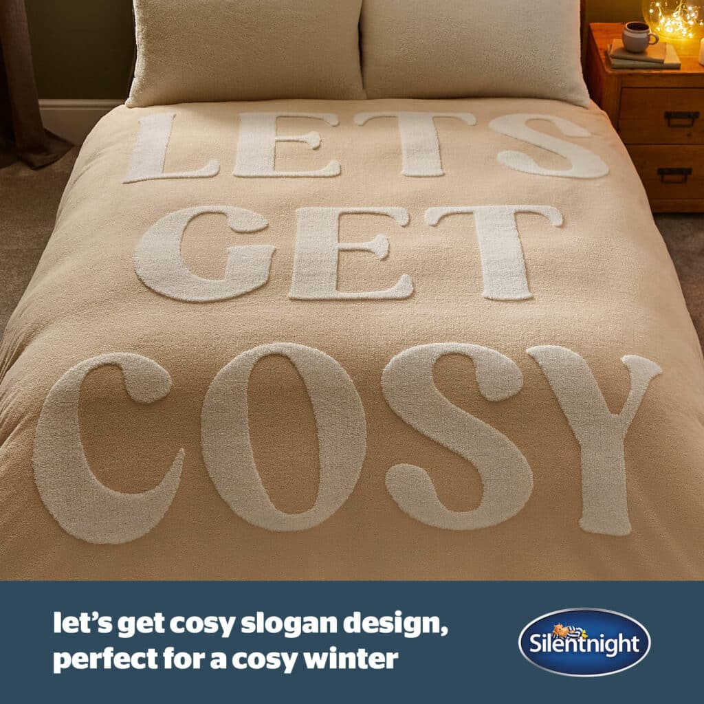 Get ready to get cosy and experience a warm hug like feeling full of teddy softness as you snuggle into the Silentnight Let’s Get Cosy Duvet Set.