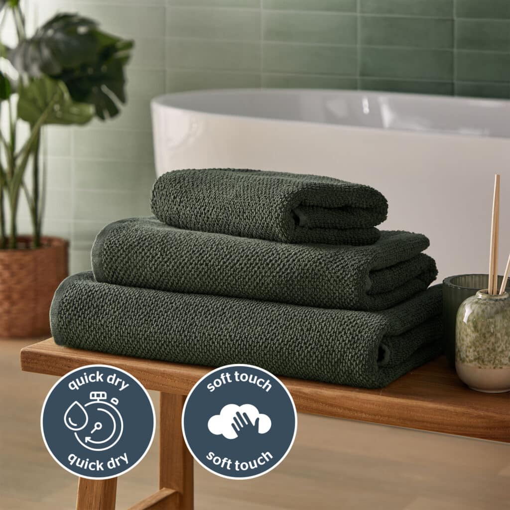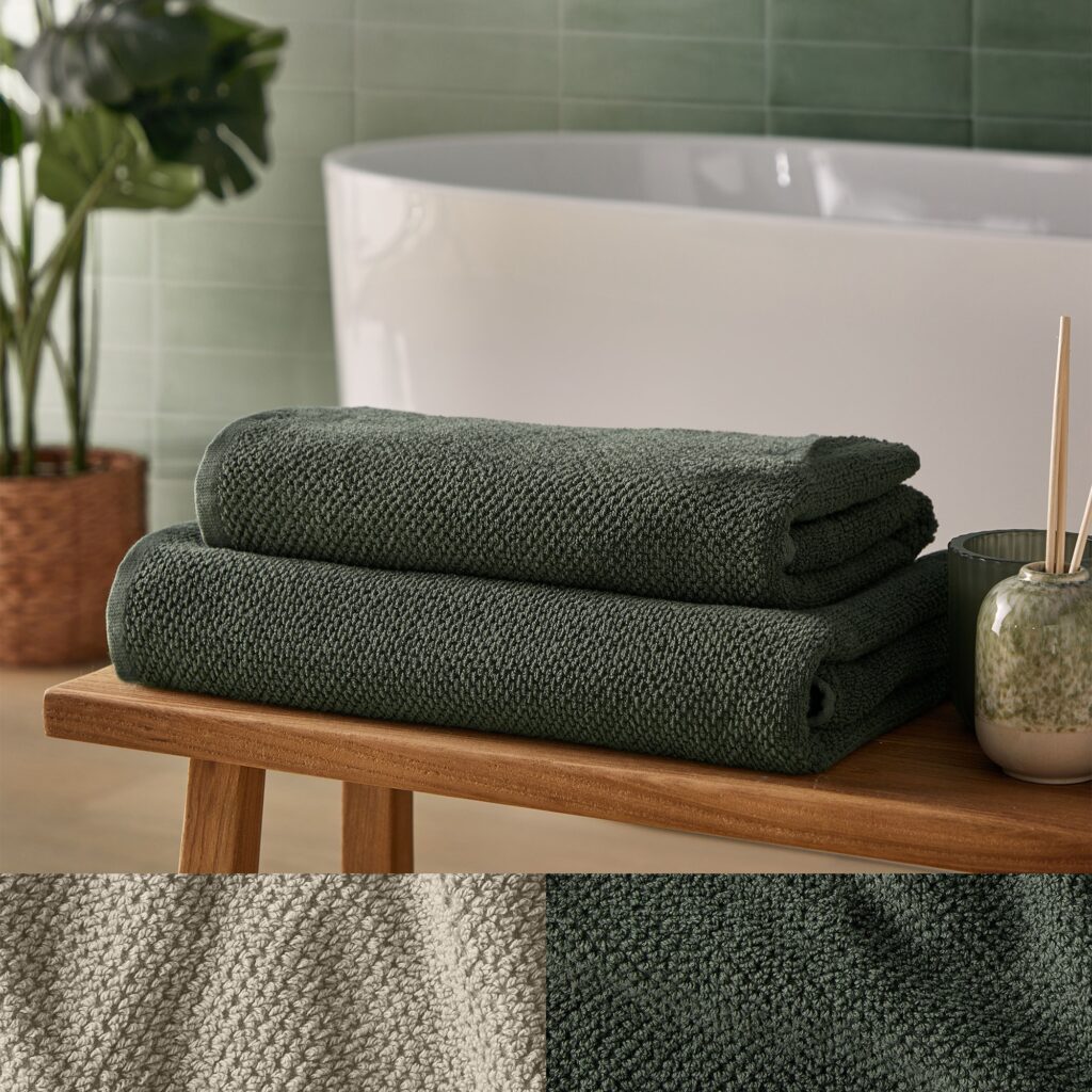 Featuring a popcorn waffle design, these towels are perfect for adding a modern touch to your bathroom. The towels are easy to care for, machine wash at 40°C and tumble dry.
