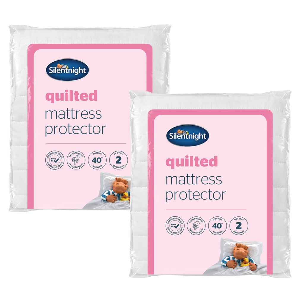 Bundle includes 2 Silentnight Quilted Mattress Protector which have been designed to protect and prolong the life of your mattress, helping to shield spills, stains and general wear and tear. The soft touch quilted cover is filled with soft and comfortable hollowfibre which helps to add an extra layer of cushioned comfort to your mattress.