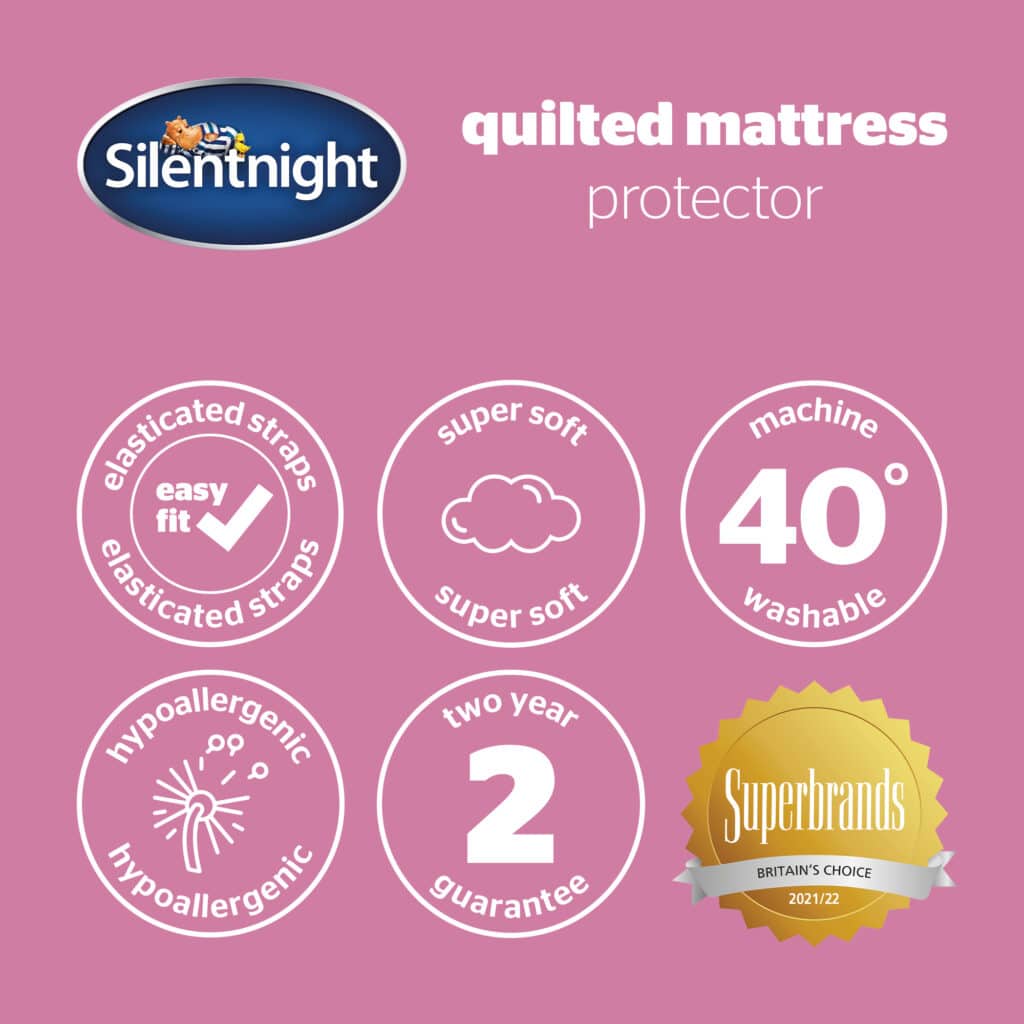 The Silentnight Quilted Mattress Protector comes with a 2 year manufacturer’s guarantee for peace of mind. This protector is hypoallergenic which means it does not contain any materials that are likely to cause allergies and it is machine washable.