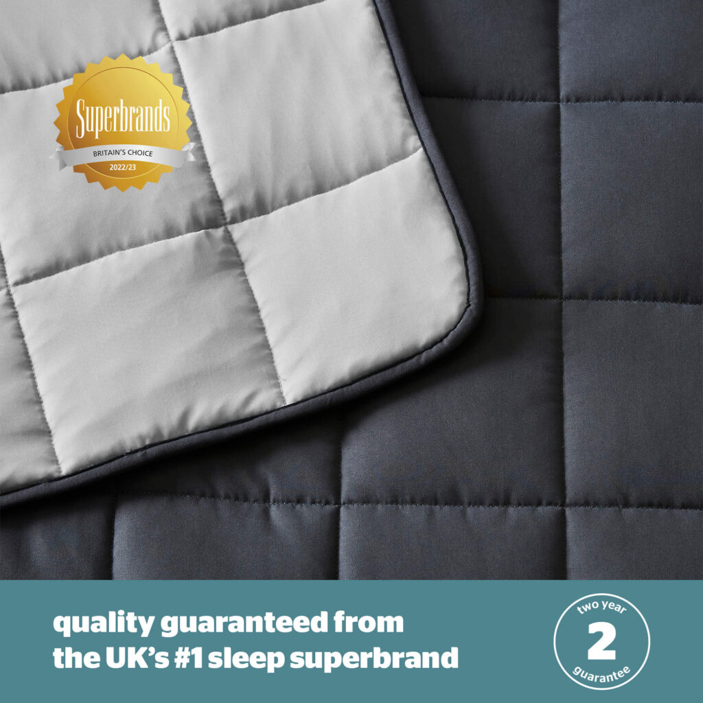 Perfect for restless sleepers and overheaters, the Silentnight Cooling Weighted Blanket is designed for ultimate relaxation. The deep touch pressure teamed with cooling fabrics will help you achieve a wonderfully calm and comfortable night’s sleep. The innovative cool treated fabric will help combat overheating often caused by the menopause, all whilst still enjoying the anxiety reducing hug from the weight of the blanket.