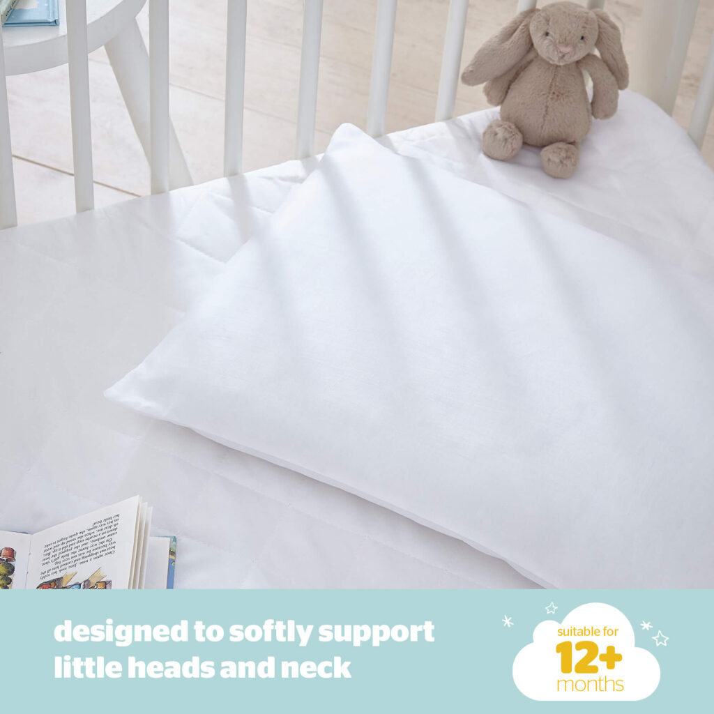 - KIND TO SKIN: This cot bed pillow is hypoallergenic and has been designed especially with your little one's comfort in mind.