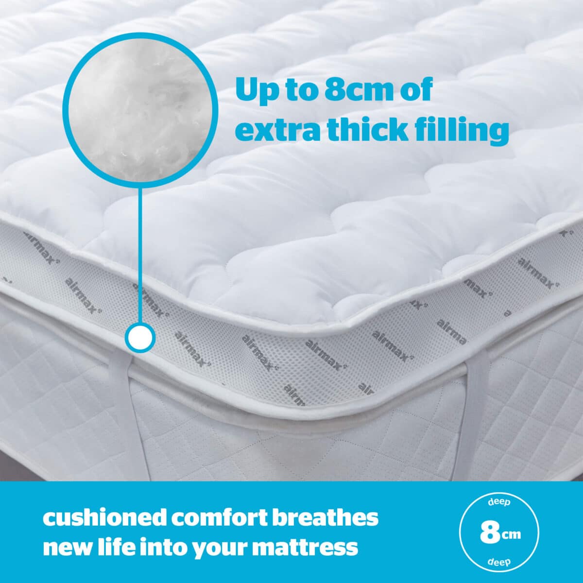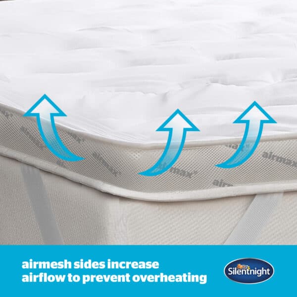 The Silentnight Airmax range is specially designed to increase airflow and circulation. Featuring air mesh sides, the pillows, duvet and mattress topper help air move freely around your body and head to prevent overheating and keep you comfortable in every season. The 10.5 tog duvet is ideal to use all year round whilst the topper is deeply filled with hollowfibre, the 8cm dual layer construction also provides ultimate comfort and will help to refresh and rejuvenate any mattress.