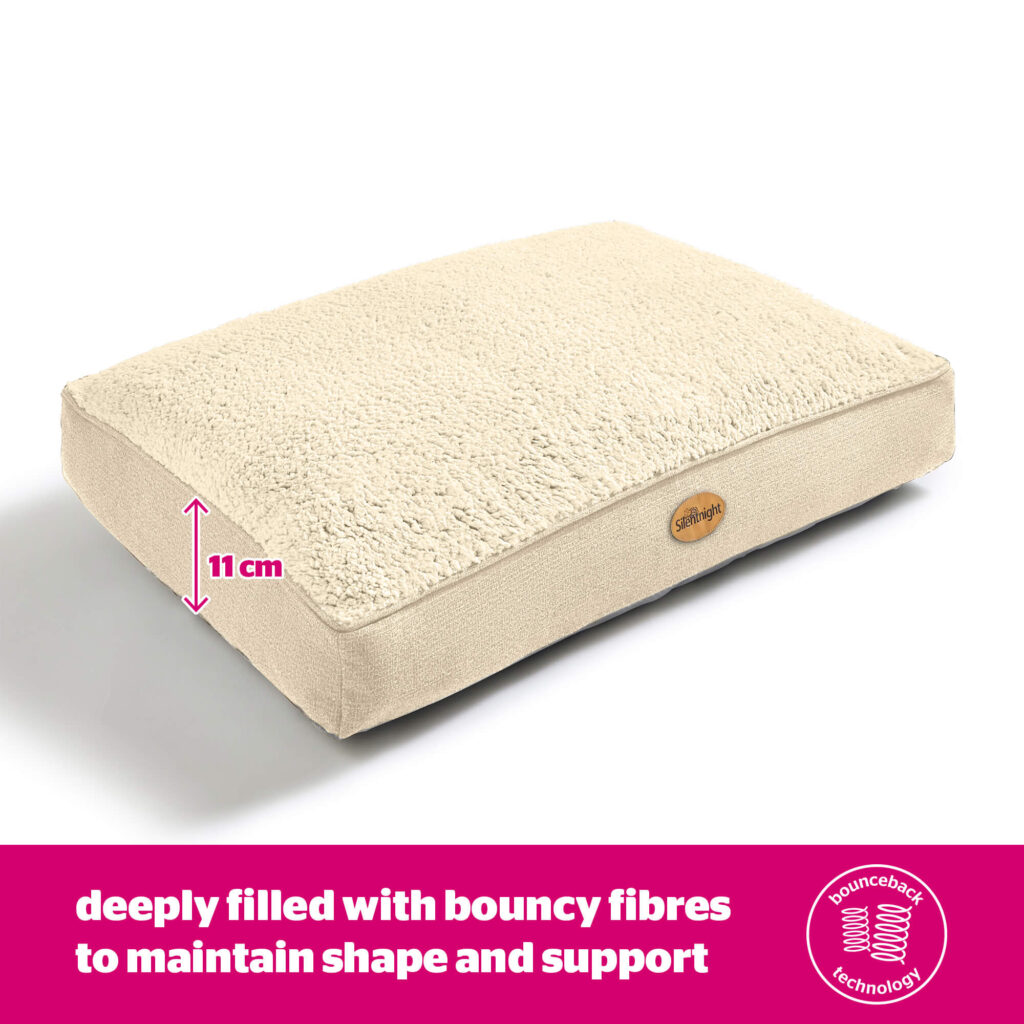 Filled with signature soft and springy fibres that rebound night after night to keep the bed feeling plump, cosy, and comfortable for longer. Featuring a super soft and cosy sherpa top, so your pet can enjoy a wonderfully comfortable snooze.