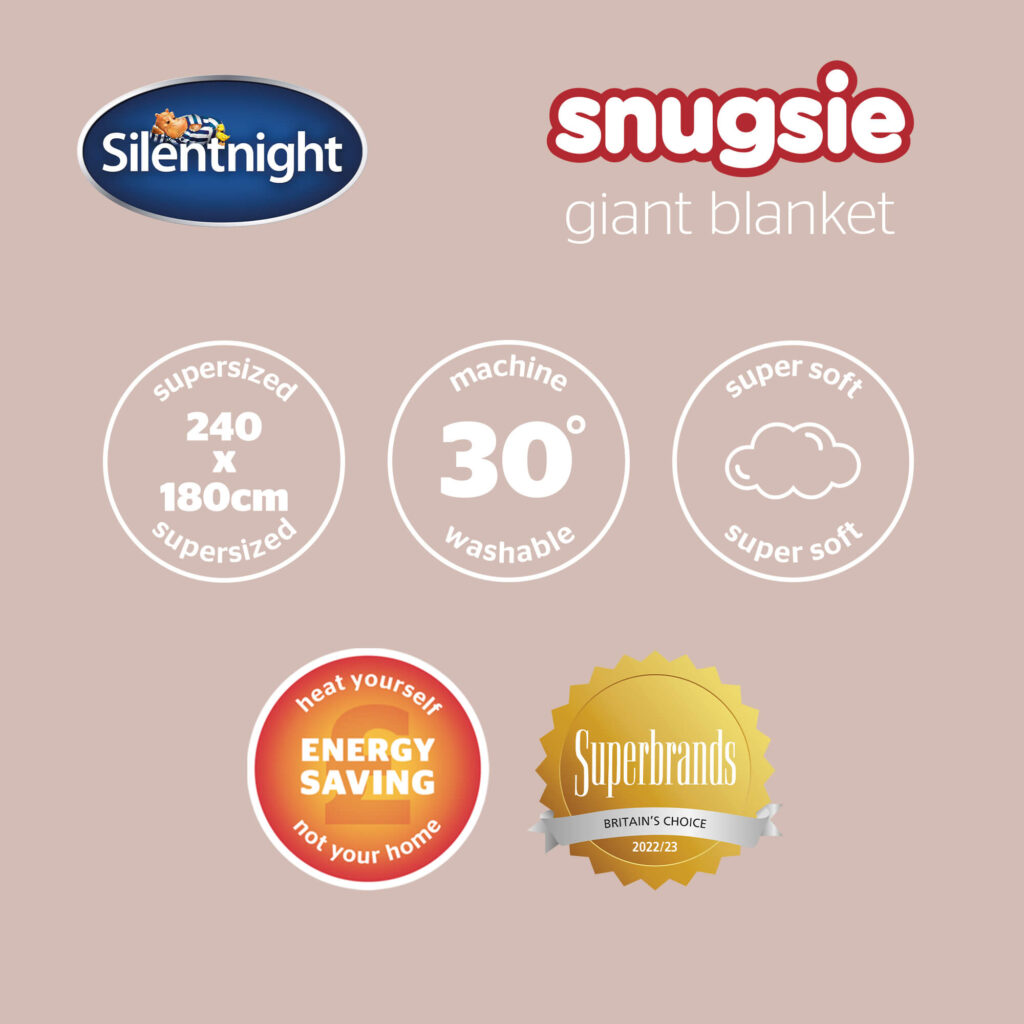 The Silentnight Snugsie Giant Blanket is the ultimate snuggly accessory for your home – sumptuously soft, cuddly comfort to keep you warm and cosy as you relax.