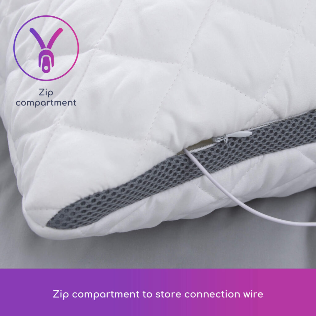 Our pillow is not only smart, it’s also super comfortable. The pillow has a luxuriously soft quilted cover and is filled with squishy fibres, perfectly plump and supremely comfortable. The speaker lies undetectable inside, so you won’t even know it’s there.