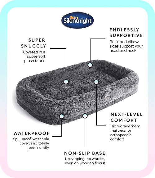 It’s back and better than ever! The NEW and improved Silentnight Snuggle Pod Human Pet Bed is now even comfier, with even more snuggly filling and fluffiness to cuddle into. This human dog bed is ultra-soft and super cosy, making it your go-to for relaxing, sleepovers, studying, or cuddling with your furry friend.