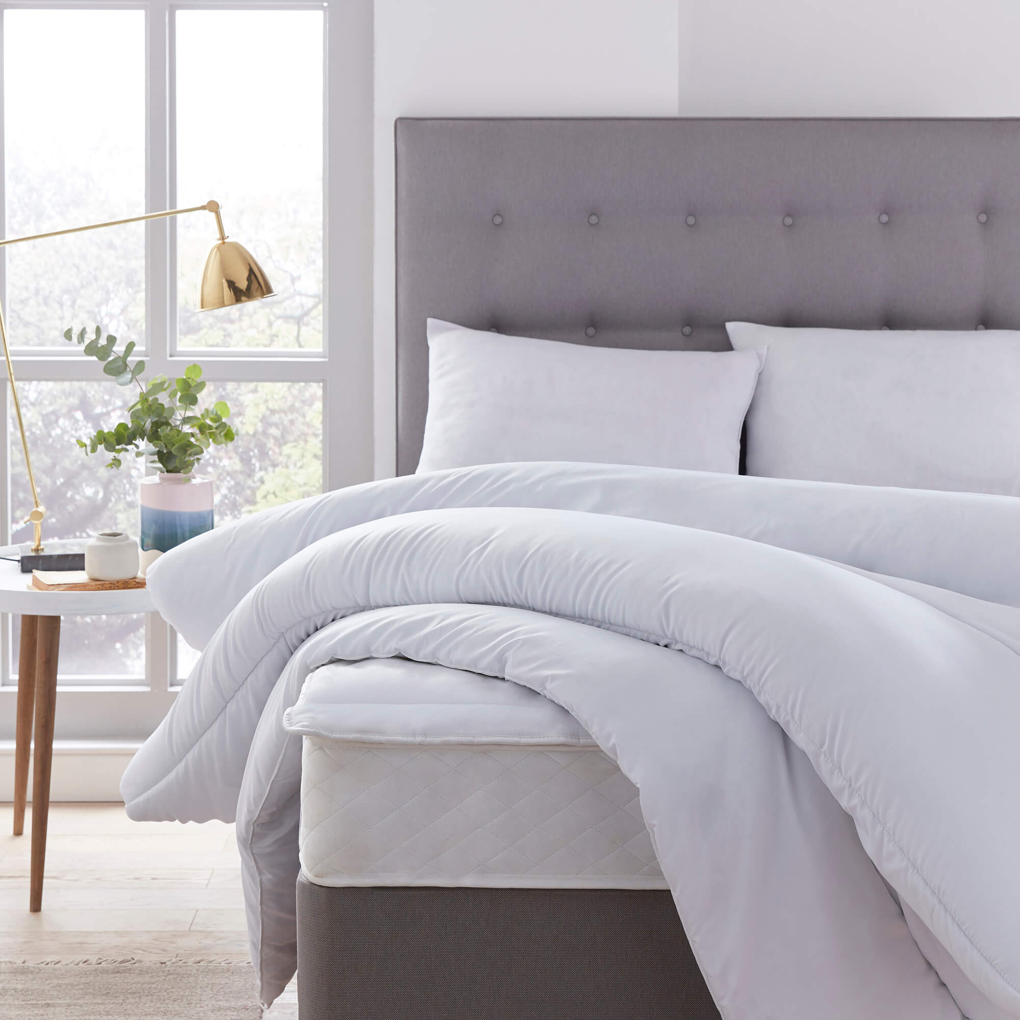 First and foremost, you’ll need a comfortable mattress to ensure a good night’s rest. Student accommodations often provide one, so focus on making it more comfortable. For ultimate freshness and comfort, consider using a mattress topper for extra support and a soft, breathable protector to keep your mattress clean, hygienic and prolong its lifespan.