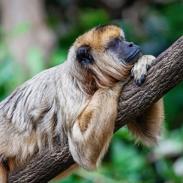 Most active during the night, the owl monkey is very much a nocturnal animal as it sleeps for approximately 17 hours during the day. Found in the forests of Central and South America, owl monkeys have huge brown eyes that enable them to see clearly in the dark when they are awake.